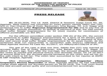 Man Convicted for Wife’s Murder, Awarded Life Imprisonment in Agartala Court by National Spectrum March 27, 2026 0