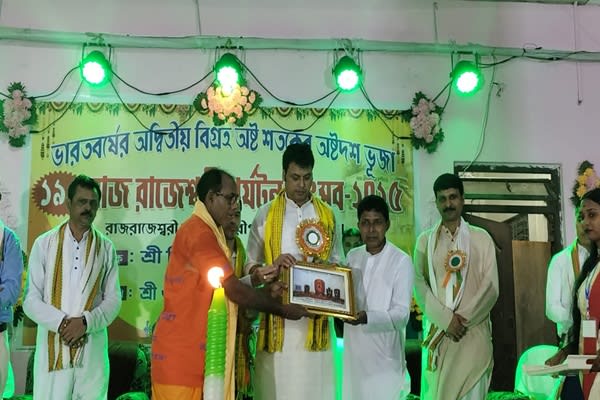 Speaking at the inaugural function of the Diwali festival at the Raj Rajeshwari Temple in Muhuripur, Deb said that the initiative aims to boost both cultural preservation and regional economic growth. “Just as the Tripura Sundari Temple has been redeveloped with modern infrastructure, similar projects have been proposed for the Raj Rajeshwari Temple, the Daitweswari Temple in Sabroom, and the Belonia Kalibari,” he said. Deb informed that a ₹10 crore project has been specifically proposed for the Raj Rajeshwari Temple alone.
