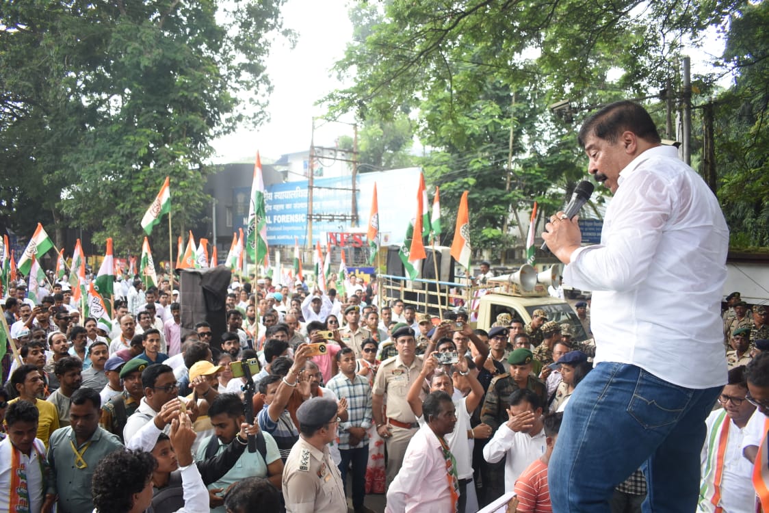 The rally, however, was not without controversy. Congress leaders clashed with police over repeated shifting of their stage, initially set up near the Circuit House, where Ganesh Chaturthi celebrations organized by the BJP were underway. After objections, police relocated the stage multiple times, sparking heated verbal exchanges.