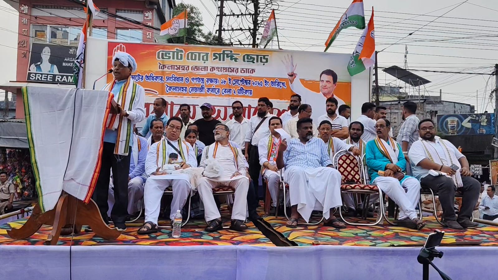 The rally was attended by senior leaders including Tripura Congress in-charge Christopher Tilak, TPCC president Ashish Saha, MLAs Birajit Sinha and Gopal Roy, district president Md. Badruzzaman, state general secretary Rudrendu Bhattacharjee, and Youth Congress president Neel Ratan Saha.