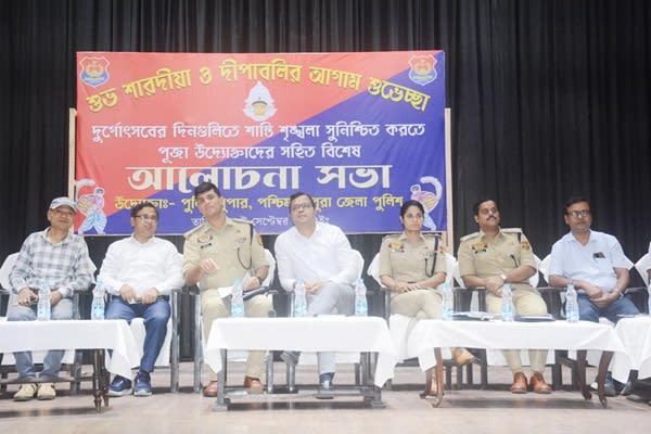The meeting, organized by the Superintendent of Police (SP), West Tripura District, brought together key stakeholders including puja organizers, decorators, sound system providers, and representatives from local clubs. West Tripura District Magistrate (DM) Dr. Vishal Kumar and SP Namit Pathak led the discussions, alongside other senior officials.