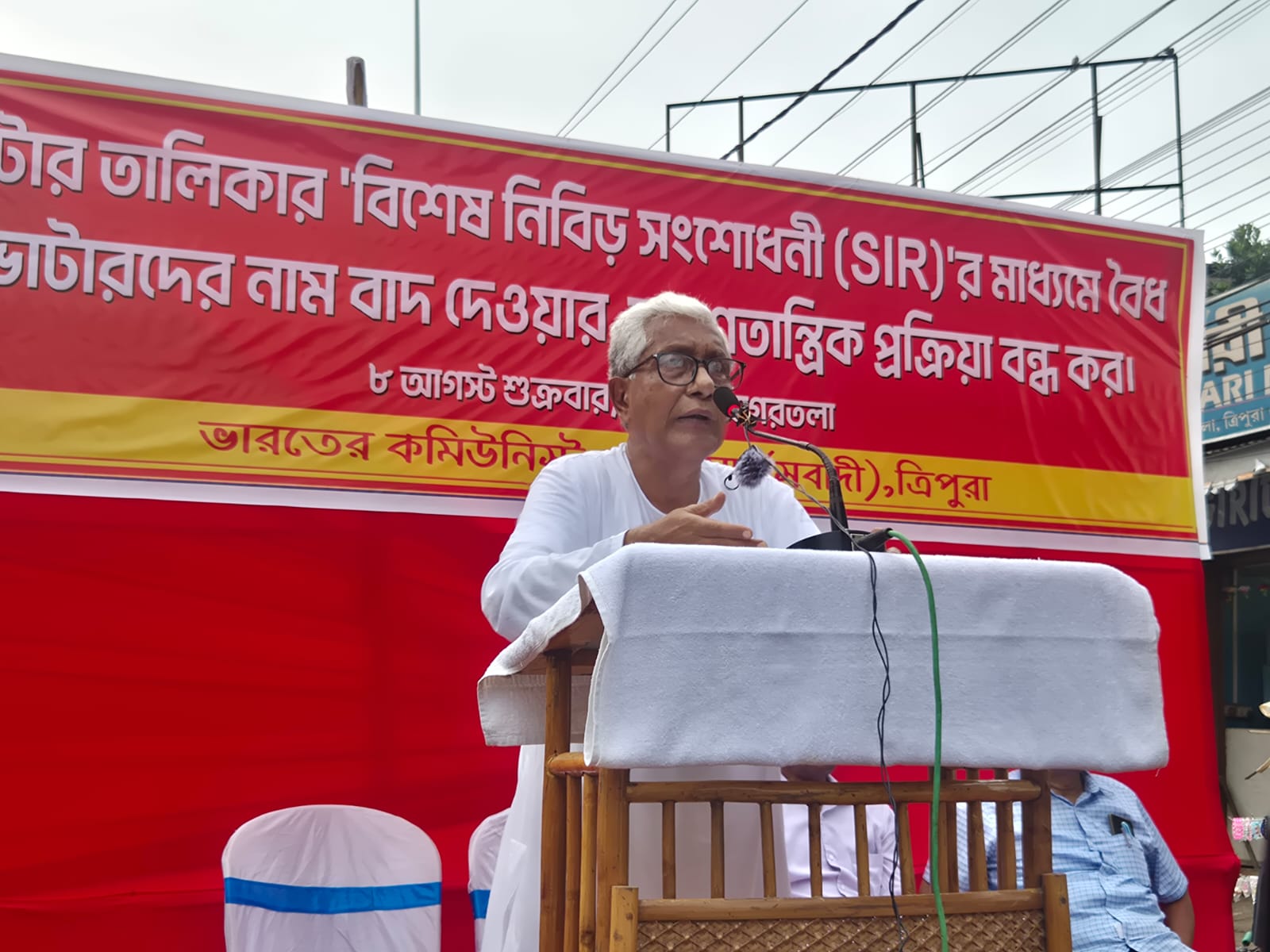 In his address, Manik Sarkar accused the BJP of deliberately targeting voters who are known supporters of opposition parties. “This manipulation of the electoral roll is nothing but an attempt to destroy democratic rights. Many genuine voters are finding their names missing under the pretext of the revision exercise. This is not just negligence; it is a planned political move,” said Sarkar.