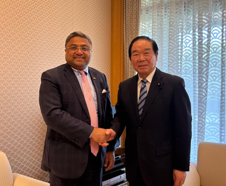 Ambassador George met Fukushiro Nukaga, Speaker of Japan’s House of Representatives, and discussed avenues to further enhance bilateral ties. The Indian Embassy in Tokyo said the talks focused on strengthening the partnership, including human resource exchanges.