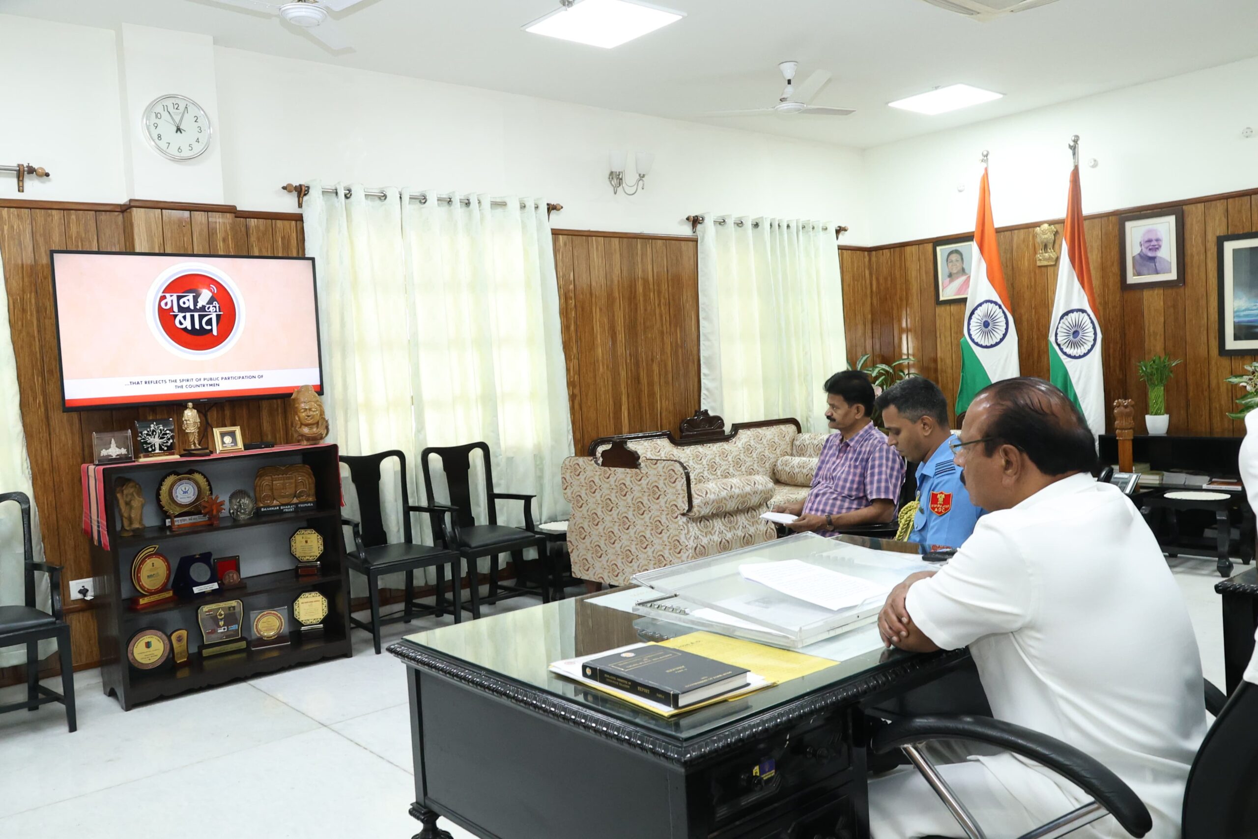 Indra Sena Reddy Nallu on Sunday listened to the 132nd episode of Mann Ki Baat, the monthly radio address by Prime Minister Narendra Modi, at Lok Bhavan in Agartala.