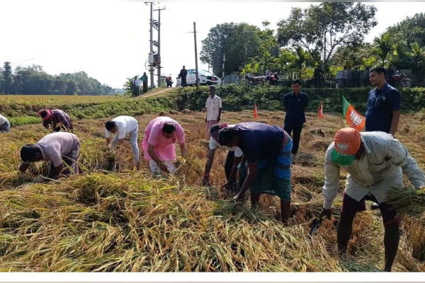Despite the busy schedule, Barman remained fully committed to his ministerial duties. While travelling through West Durlabhnarayan village, leaders of the BJP Kisan Morcha approached him with a request. The Morcha had launched a special three-day initiative to harvest paddy for farmers free of cost, and they sought his participation. Barman readily agreed.