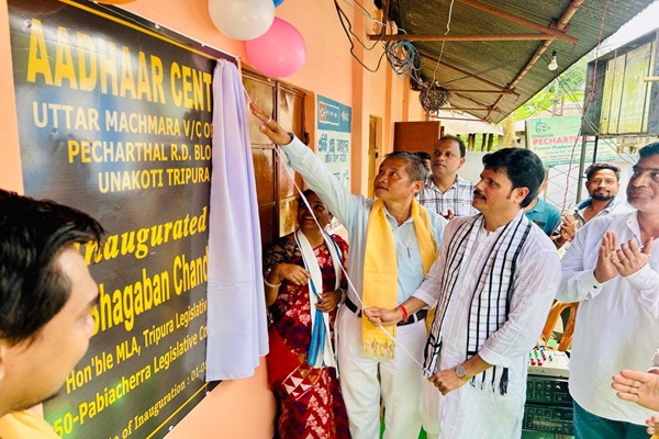 Agartala: August 01: In a significant push for community empowerment and grassroots development, MLA and Pradesh BJP General Secretary Bhagaban Das inaugurated two key initiatives on Friday at the North Machmara Village Committee Office in the Pabiacherra Assembly Constituency. The event marked the formal launch of the Machmara Aadhaar Enrollment Centre and a banana chips production project undertaken by Mrigarampara PVTG VDVK (Van Dhan Vikas Kendra).