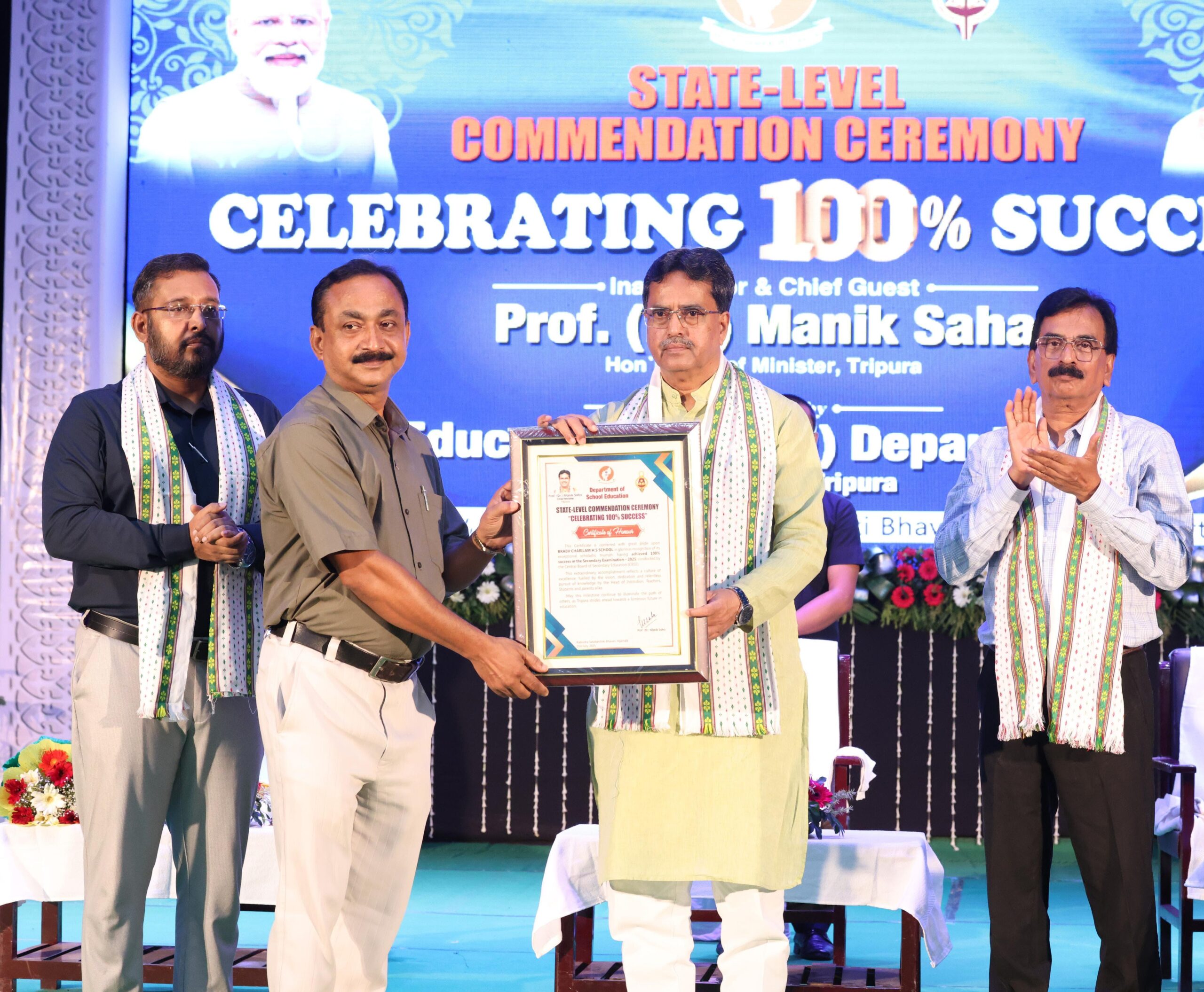 Dr. Saha also honored schools that achieved 100% pass percentage in this year’s Madhyamik and Higher Secondary exams under TBSE and CBSE (Vidyajyoti).