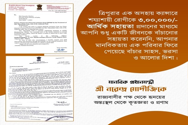 The act has received widespread praise across Tripura, showcasing the human-centric approach of national leadership in addressing citizens’ urgent needs. It also highlights the importance of government mechanisms like the PMNRF in delivering timely assistance to those in distress.