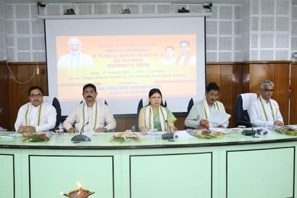 Agartala: August 11: A State-Level Awareness-cum-Review Meeting on welfare schemes for Other Backward Classes (OBCs) was held at Pragna Bhavan, Agartala, on Monday, chaired by Minister Santana Chakma in the presence of OBC Corporation Chairman Tapas Majumdar, Secretary Tapas Roy, Director Nirmal Adhikari, and others.