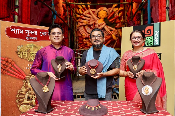 To mark the occasion, a special press preview was hosted at the celebrated Nalin Sarkar Street Durga Puja pandal, where the exclusive Swarna Sambhar collection ‘Shaktirupeni’ was unveiled by eminent artist Sanatan Dinda along with Directors Arpita Saha and Rupak Saha. Speaking at the event, Dinda said, “I am delighted to unveil the Shaktirupeni collection. I have been associated with Shyam Sundar for many years, and their artistic jewellery concepts never fail to fascinate me.”