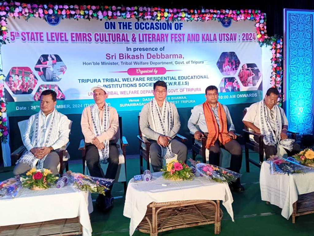 Agartala Sept 26: State Tribal Welfare Minister Bikash Debbarma on Thursday inaugurated the 5th State Level EMRS Cultural & Literary Fest and Kala Utsav 2024, a vibrant celebration of creativity and talent organized by Tripura Tribal Welfare Residential Educational Institutional Society under the Tribal Welfare Dept, Govt. of Tripura.