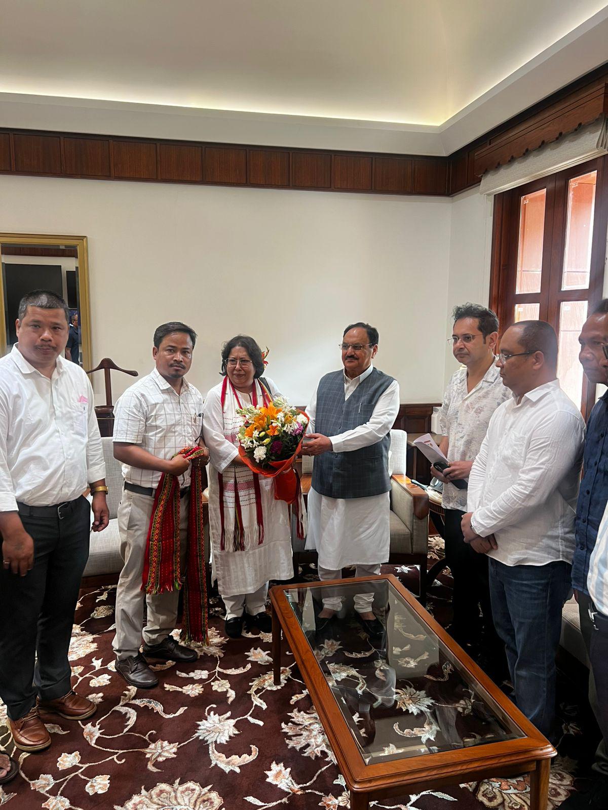 Agartala: July 24: A delegation from the TIPRA Motha Party, led by Royal Scion and TIPRA Motha founder Pradyot Bikram Manikya Debbarma, met BJP National President J. P. Nadda in New Delhi to push for the immediate implementation of key issues concerning the indigenous people of Tripura.