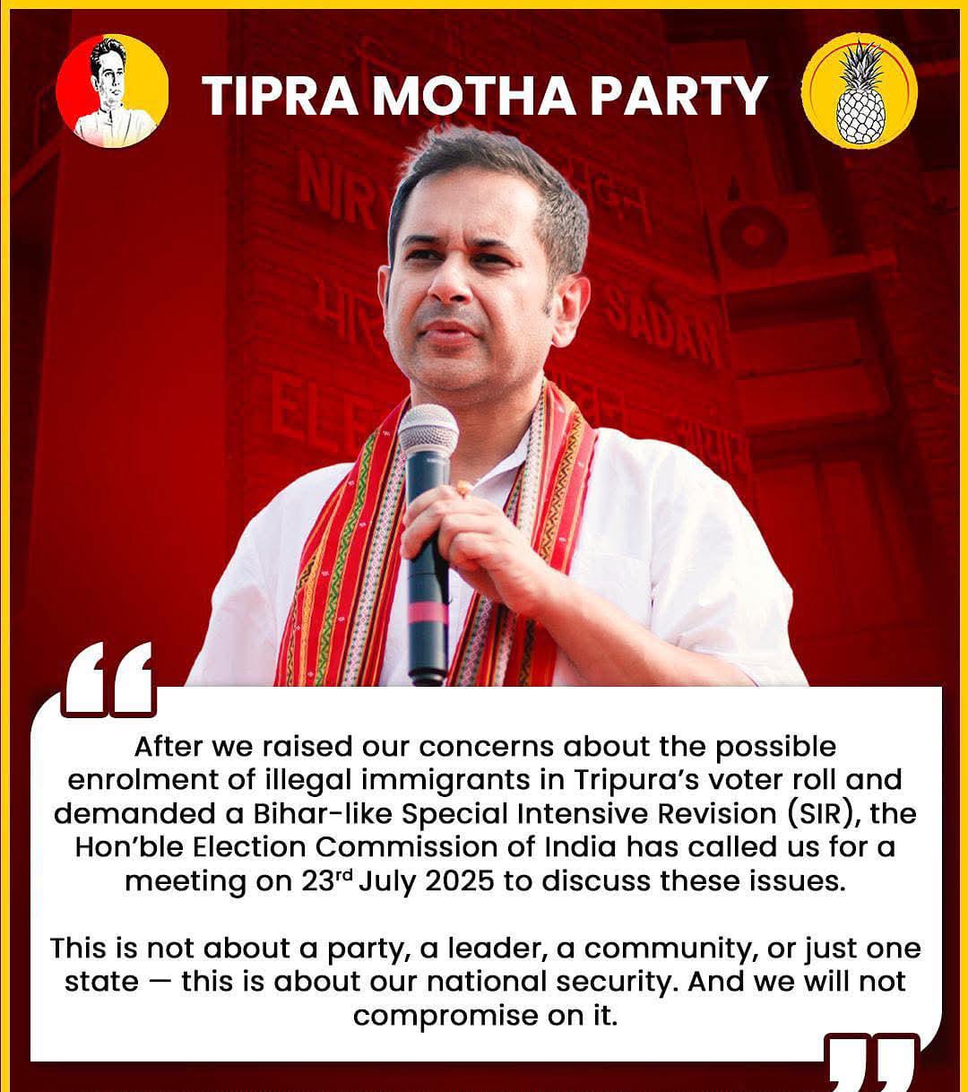 Tipra Motha’s Efforts Lead to ECI Meeting on Illegal Migration on July 23