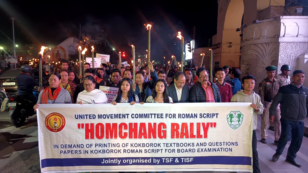 However, tribal student bodies and social organisations have been demanding the recognition of the Roman script as the official script for Kokborok for several decades. The issue has also sparked repeated controversies during Tripura Board examinations, particularly over the script in which students are allowed to write their answers. While such disputes were resolved in the past through government intervention, the broader debate over official script selection remains unresolved.