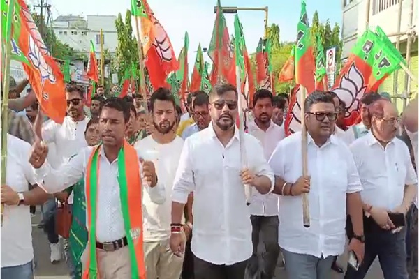 The rally was led by BJP state president and MP Rajib Bhattacharjee and saw the participation of several cabinet ministers, including Sushanta Chowdhury, Sudhangshu Das, Bikash Debbarma, and Santana Chakma, along with senior party functionaries.