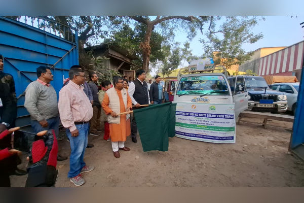 In a significant boost to Tripura’s organic agriculture sector, Agriculture and Farmers’ Welfare Minister Ratan Lal Nath on Thursday flagged off a consignment of 1,000 kilograms of organic white sesame destined for Gujarat under the Mission Organic Value Chain Development for the North Eastern Region (MOVCDNER). The development highlights the growing national demand and credibility of organic produce cultivated by Tripura’s farmers.