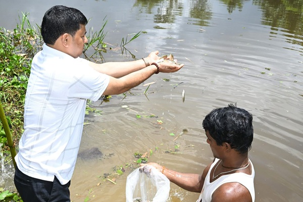 Agartala: July 30: In a bid to strengthen Tripura’s fish production and promote self-reliance in aquaculture, Fisheries Minister Sudhangshu Das on Wednesday participated in a fish seed release programme at a large water body in Jagannathpur, under the Fatikroy Assembly constituency.